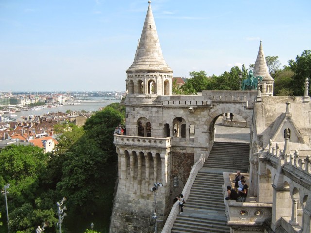 På buda-siden, ved Frihetsbroen er det en stor park der alle stier til slutt leder mot toppen, Gellerthøyden og Citadelet. Dette er en av de store attraksjonene i Budapest, som jeg anbefaler. Fantastisk utsikt og mye å se på. Det er fult mulig å ta taxi eller buss opp langs veien, fra andre siden, men jeg synes man mister den fineste delen av turen hvis man kjører opp. Er det varmt ute anbefaler jeg en vannflaske med på turen, det kan være en bit opp avhengig av hvordan vei man går. Hvis man starter å først ta en avstikker til høyre kommer man til en kirke som ligger inne i fjellet. Deretter er det mange muligheter, uansett hvor man går kommer man til slutt til toppen 😉 Vel oppe er det en bod som selger drikke og andre småting, på vinteren er det varm vin og på sommeren er det is 🙂 På veien ned går vi gjennom en annen del av parken, der alle stier leder til bunnen :p På bunnen er det en stor fin statue, med en elv og to trapper. Hvis man da går ned til elven støter man etter hvert på en trikk som man kan ta bort til slottet. For å komme seg opp til slottet kan man ta taubanen eller gå opp gjennom parken, jeg anbefaler som vanlig spaserturen, selv om taubanen er koslig den å. Oppe på slottshøyden er det masse å se, både inne og ute. Selv er jeg ikke så interessert i slike guidede turer så vi tok oss en gang en spasertur rundt inne for å se på alle de fine statuer ol. Ellers anbefaler jeg å ta masse bilder på toppen, da utsikten her også er veldig bra. Når jeg kommer til slottshøyden er jeg ofte veldig sulten, da jeg gjerne startet dagen med å gå opp fra Gellert til Gellerthøyden, så ned og langs elven til slottet og opp der. Etter en god lunsj er det bare å trø videre innover slottshøyden til man kommer til Mathiaskirken. Mathiaskirken er en svær katedral med de mest utrulige utsmykkninger, og det finnes ikke et bilde som gir den rettferdighet engang, dette må rett og slett ses. Ved siden av Mathiaskirken ligger Fiskerbastionen, en lang mur med flere tårn. Dette er en fantastisk utsiktspost over Pest-siden av byen og spesielt parlamentet som ligger på den andre siden av elven. Når man går ned fra Fiskerbastionen er det bare å følge veien rett tilbake til Kjedebroen, der du selv velger om du ønsker å gå over eller ta metro under fra nærmeste stasjon.