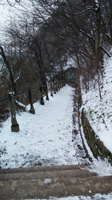 Spasertur ned fra Gellerthøyden, gjennom parken, januar 2014.